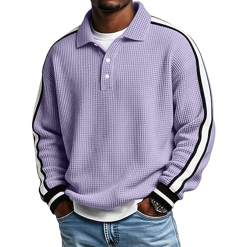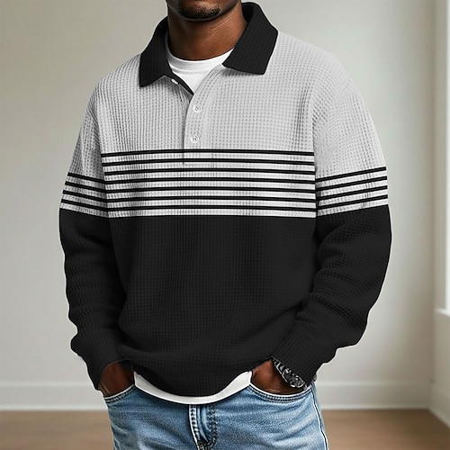 Per uomo Strisce orizzontali Magliette Polo a Nido d'Ape Polo da rugby Testurizzato Manica Lunga Magliette polo Bavero Abbigliamento Sportivo Casual Scuola Athleisure Abbigliamento quotidiano Stampa