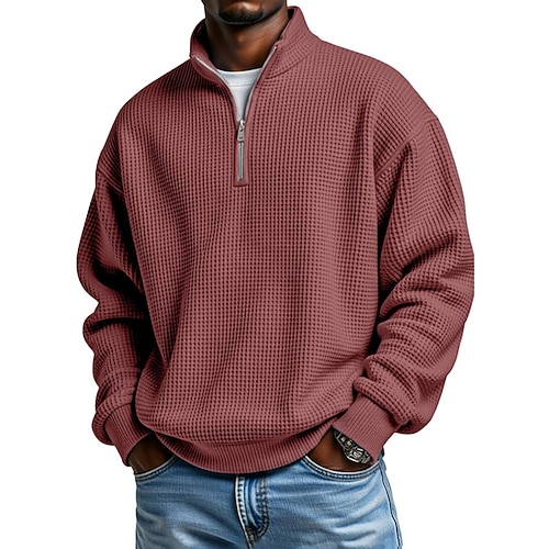 Per uomo Magliette Polo a Nido d'Ape Polo Vacanza Streetwear Zip a un quarto Manica Lunga Moda Essenziale Semplice Primavera Autunno Vestibilità regolare Viola blu navy Aalbicocca Nero Bianco Vino