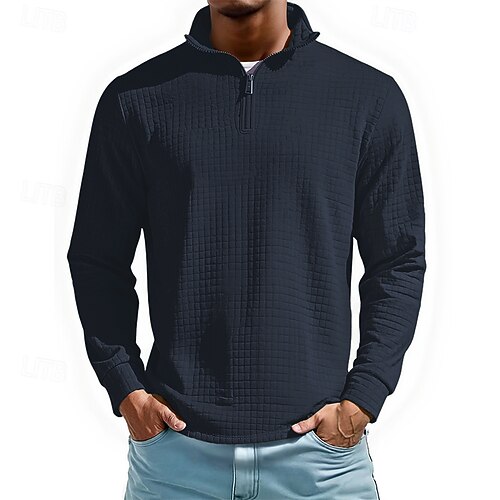 Per uomo Polo Polo con zip a un quarto Abbigliamento quotidiano Data Zip a un quarto Manica Lunga Moda Essenziale Semplice Cerniera Primavera Autunno Vestibilità regolare Vinaccia Nero Bianco Blu