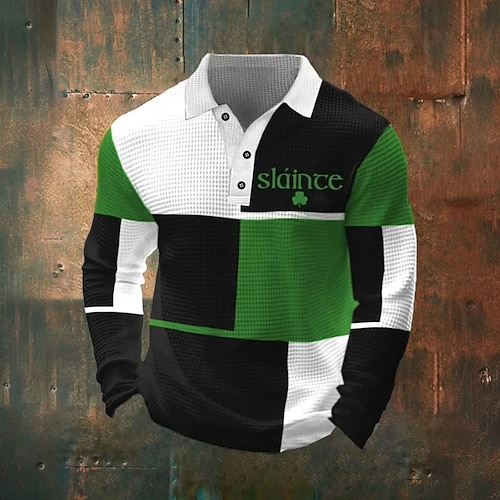 San Patrizio Per uomo Blocco di colori Trifoglio Magliette Polo a Nido d'Ape Manica Lunga Magliette polo Camicie con Colletto Casual Ferie Abbigliamento quotidiano Abito da festa Bottoni Primavera