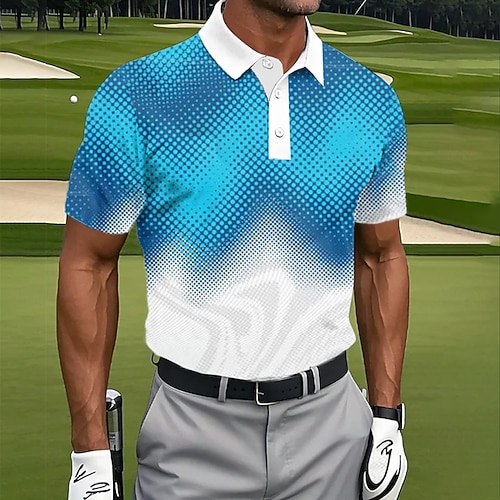 Per uomo Polo Casuale Sportivo Collo ripiegato Manica Corta Moda Tempo libero Geometrico Golf Stampa 3D Bottoni Estate Viola Blu lago Blu Polo