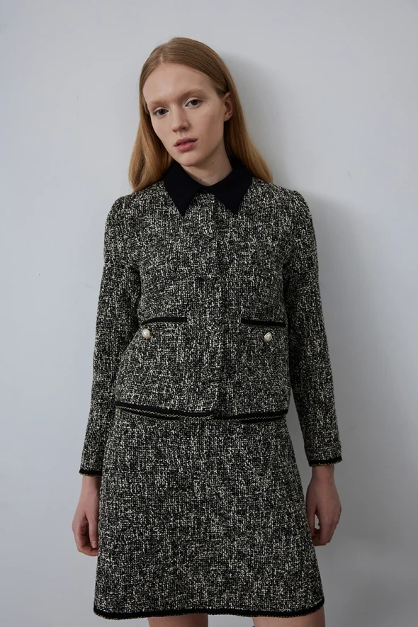 Gusto Womens Textured Tweed Blazer - Black - Size Medium | Gusto Sale | Discount Designer Brands