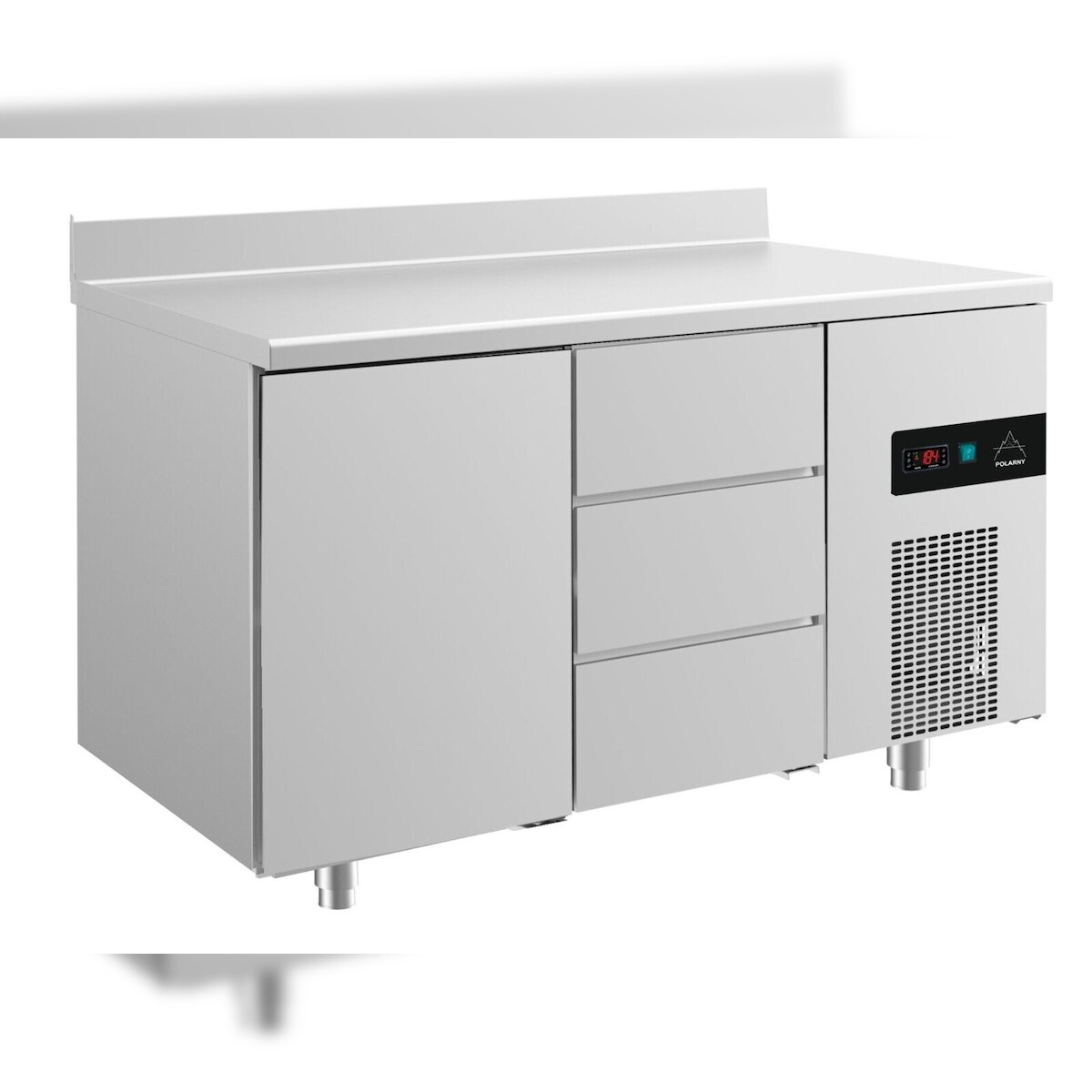 A&S polarny Gastro Kühltisch Umluftkühlung 1 Tür links 3 Schubladen rechts Aufkantung, 1400x700x850mm -2/+8°C 281l