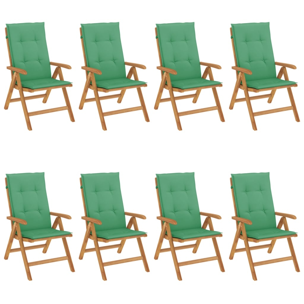 vidaXL Gartenstühle 8 Stk., Gartenstuhl mit Auflagen, Stuhl Sessel Hochlehner Verstellbar Klappbar, Klappstuhl Terrassenstuhl, Massivholz Teak
