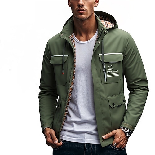 Per uomo Giacca da Esterno Impermeabile Giacca da Escursionismo Quotidiano Escursionismo Antivento Resistente all'acqua Tasca Primavera Autunno Lettera Moda Classico Con Cappuccio Regolare Nero