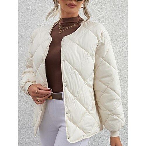 Per donna Giacca trapuntata Confortevole Traspirante Tasca Bottoni Casual Semplice Vacanza Streetwear Casuale Abbigliamento quotidiano Monopetto Corto Girocollo Vestibilità regolare Manica Lunga