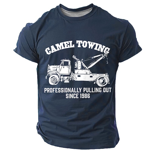 T-Shirt Umoristica da Uomo per Carro Attrezzi - 'Camel Towing Professionally Pulling Out Dal 1986' Maglietta Grafica
