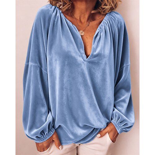 Per donna Maglietta Semplice Elegante Vintage Moda Manica Lunga Scollo a V Top Regolari Quotidiano Uscire Weekend Patchwork Blu Rosa Oro Verde Autunno Inverno