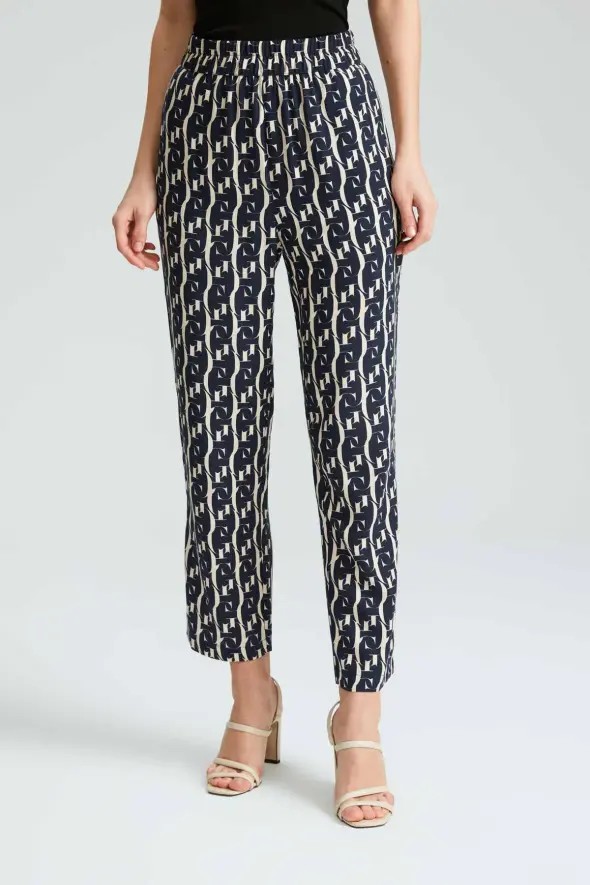 Gusto Womens Monogram Print Trousers - Navy - Size Large | Gusto Sale | Discount Designer Brands