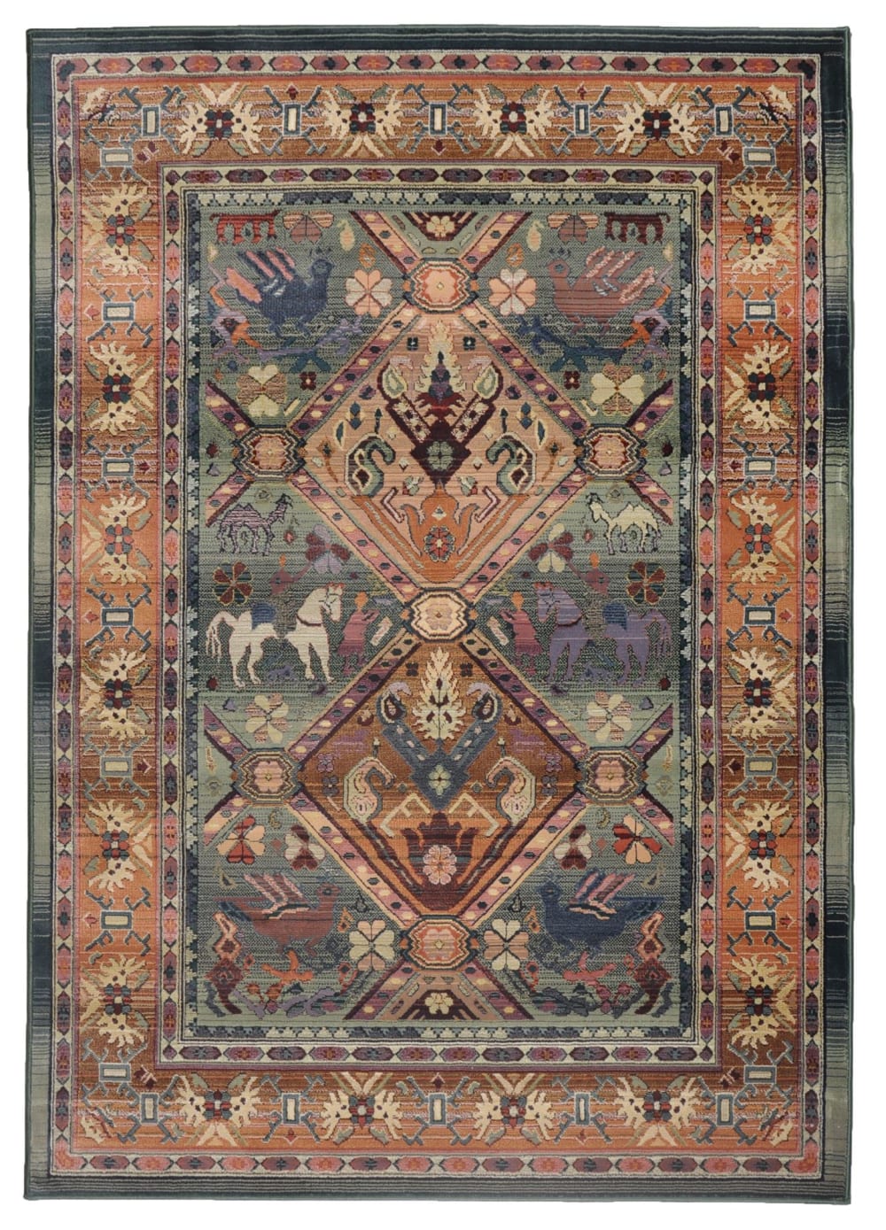 Tapis d'orient nomade tissé machine - vert 68x135 cm