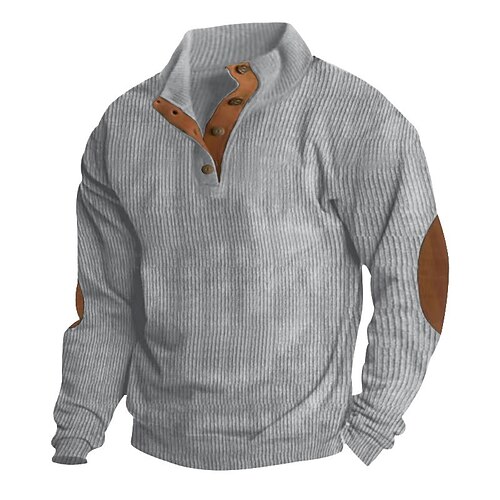 Per uomo Maglia Velluto a coste Felpa in pile Maglione Felpa con cappuccio abbottonata Blu Aalbicocca Nero Verde militare Blu marino Colletto Mao Semplice Patchwork Testurizzato Sport Outdoor