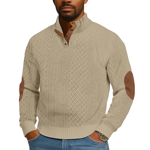 Per uomo Jacquard Maglia Maglione Felpa con cappuccio abbottonata Rosso bordeaux Nero Bianco Verde militare Blu marino Colletto Mao Semplice Patchwork Testurizzato Casuale Quotidiano Sport Outdoor