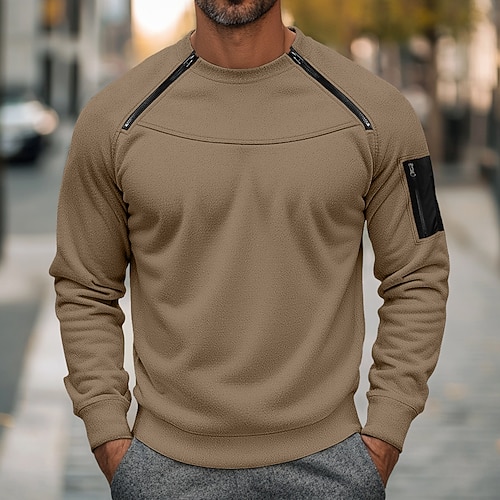 Per uomo Felpa con zip Felpa con cappuccio in pile Marrone giallastro Nero Verde militare Blu marino Marrone Girocollo Semplice Con zip Tasca Frontale Tattico Sport Outdoor Casuale Streetwear Cool