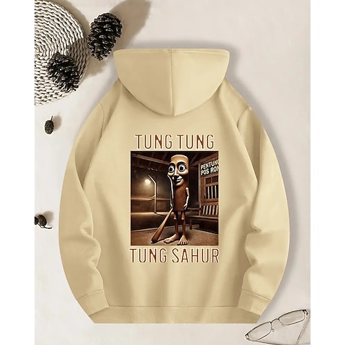 Felpa casual con cappuccio a maniche lunghe per ragazzi con stampa Tung Tung Tung Sahur, primavera autunno, moda streetwear per bambini dai 4 ai 12 anni, con cappuccio, per attività all'aperto, tutti
