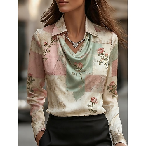 Per donna Blusa Floreale Elegante Casual Manica Lunga Colletto a Camicia Top Regolari Quotidiano Bottoni Stampato Blu Rosa Primavera Autunno Inverno