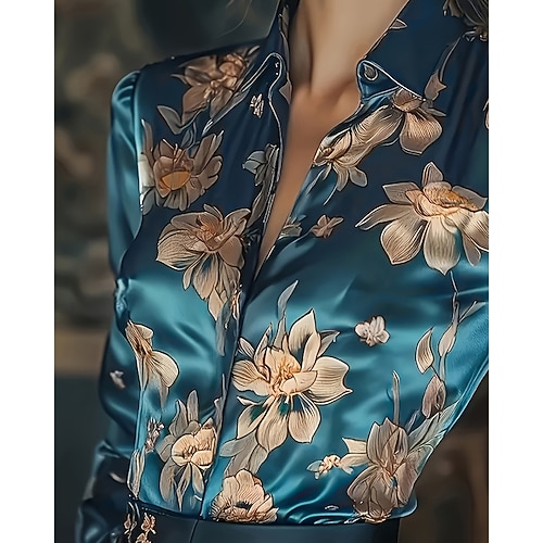 Per donna Camicia Elegant Raso/Satin Blusa Floreale Vintage Elegante Manica Lunga Colletto a Camicia Top Regolari Ferie Uscire Bottoni Stampato Vino Viola Verde Rosa Primavera Autunno