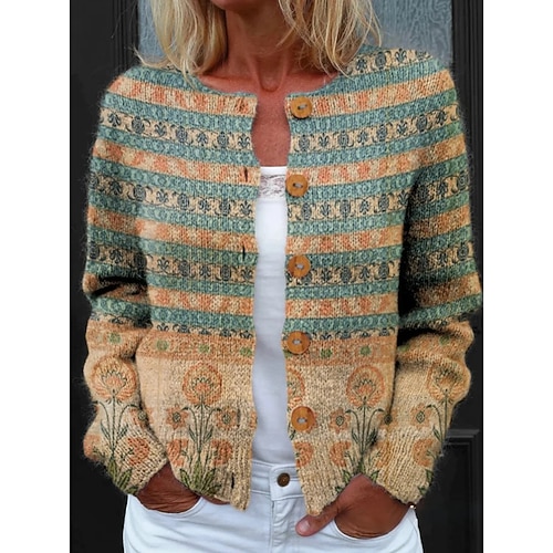 Cardigan da donna maglione lavorato a maglia a coste con bottoni davanti a girocollo lungo maniche leggero elegante vintage quotidiano floreale grafica geometrica stampa maglia outdoor quotidiani