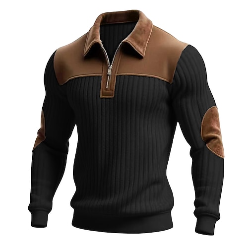 Per uomo Maglia Felpa con cappuccio Felpa con zip corta Maglia a coste Aalbicocca Nero Bianco Verde militare Colletto Mao Semplice Patchwork Testurizzato Casuale Quotidiano Sport Outdoor Vintage
