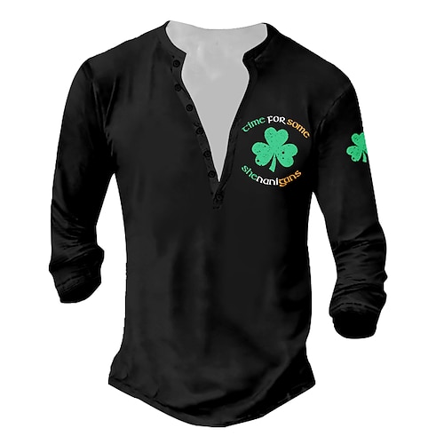 Per uomo San Patrizio Grafico Quadrifoglio Maglietta Maglia Henley Manica Lunga Vintage Designer Elegante Casuale Quotidiano All'aperto Primavera Primavera Estate Nero Verde Henley Maglietta Henley