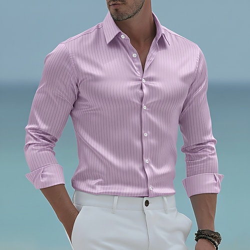 Per uomo A righe Motivo Geometrico Camicia elegante Camicia con Bottoni Manica Lunga Casual Vacanza Quotidiano Estate Primavera Autunno Colletto alla coreana Stampa 3D Blu Verde Cachi Bianco-nero
