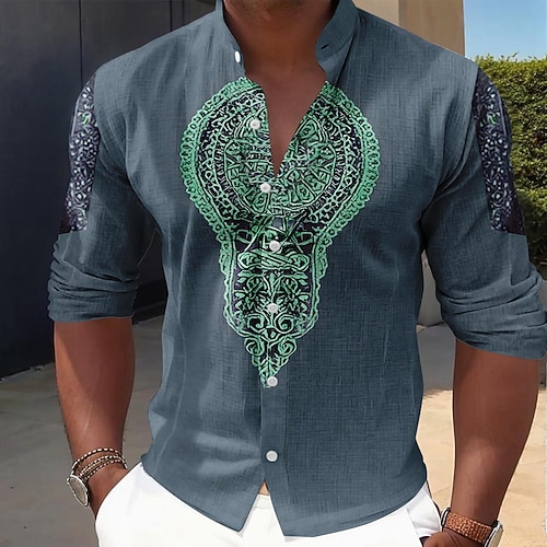 Per uomo Motivo Geometrico Etnico Camicia Camicia con Bottoni Camicia con colletto alla coreana Manica Lunga Vintage Retrò Quotidiano All'aperto Vacanza Primavera Autunno Collo alla coreana Colletto