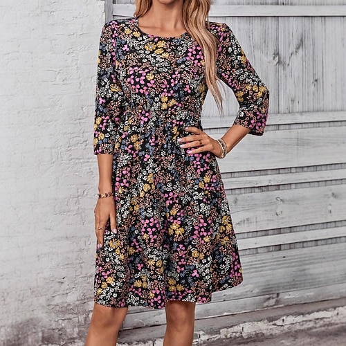 Per donna Mini Abito Abito Floreale Abito Stampato Moderno All'aperto Vacanza Uscire Vestibilità regolare Floreale Manica 3/4 Girocollo Nero Primavera Autunno