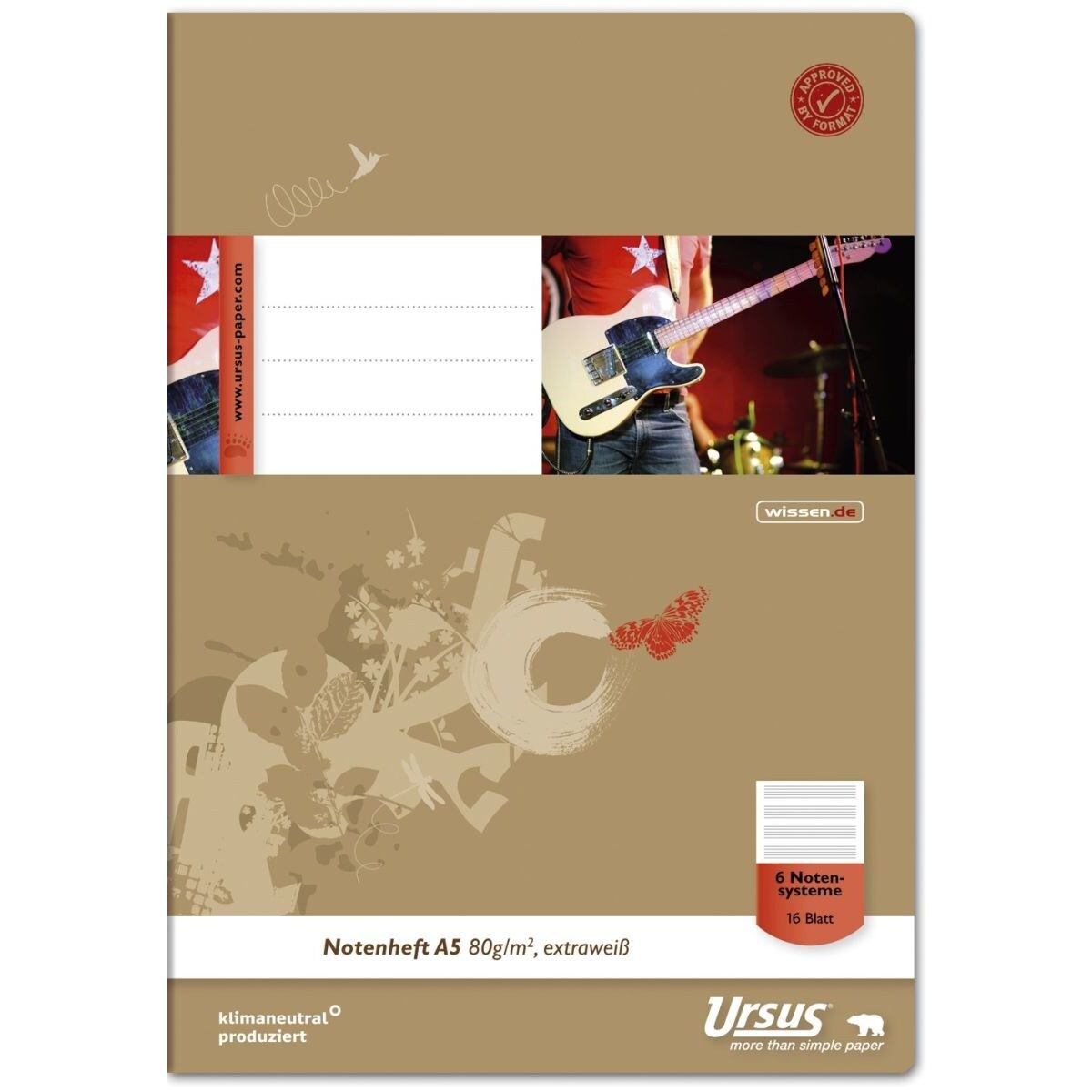 Notenheft - A5, 16 Blatt, 80 g/qm, 6 Notensysteme