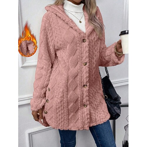 Per donna Giacca Sherpa Confortevole Traspirante Tasca Bottoni Casual Semplice Vacanza Streetwear Casuale Abbigliamento quotidiano Monopetto Regolare Felpa con Cappuccio Vestibilità regolare Manica