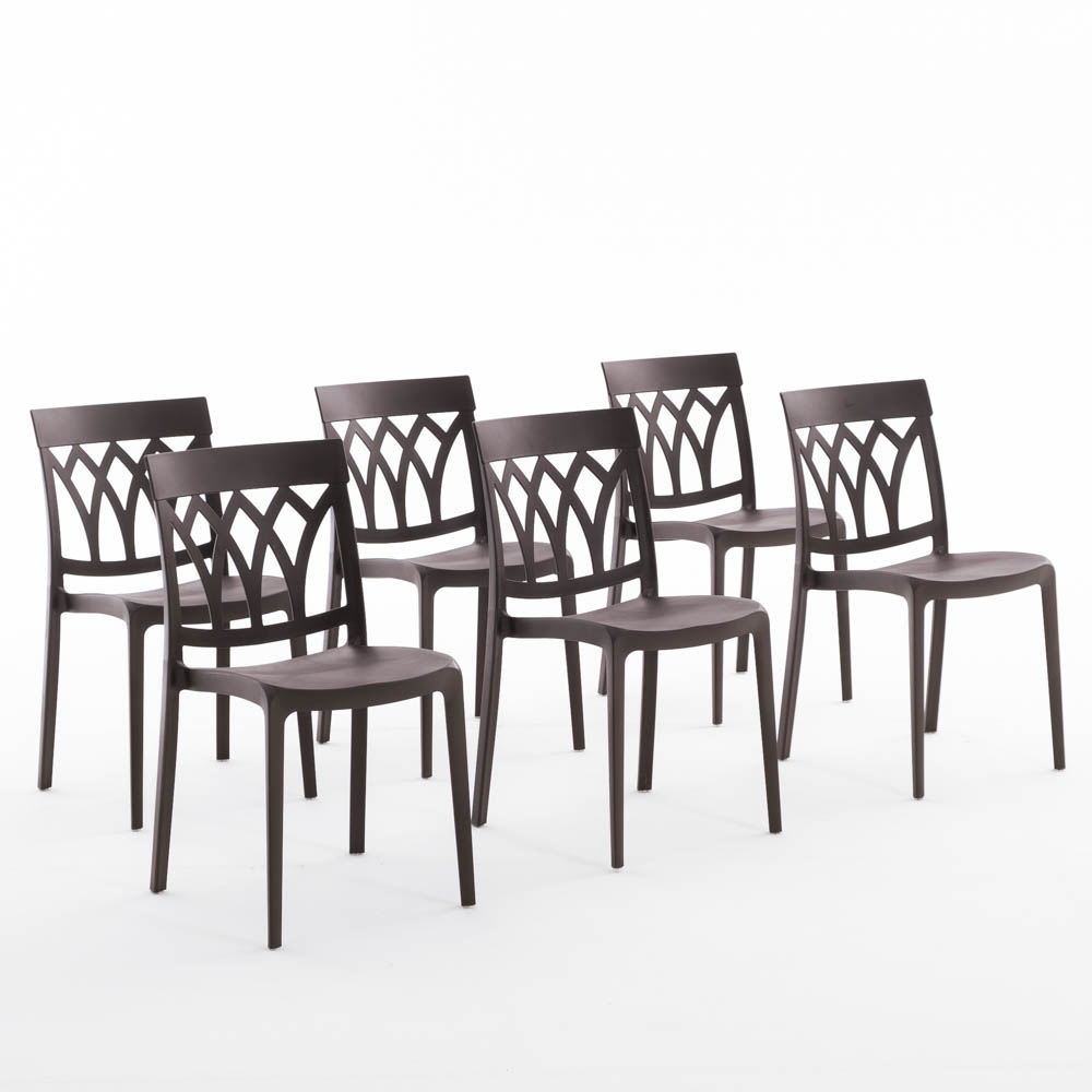 RATTATAN 6er-Set stapelbare Stühle aus Polypropylen mit Glasfasern für Außenbereich und Garten, Bar und Restaurant, Küche modernes Design - EMMA - Mokka