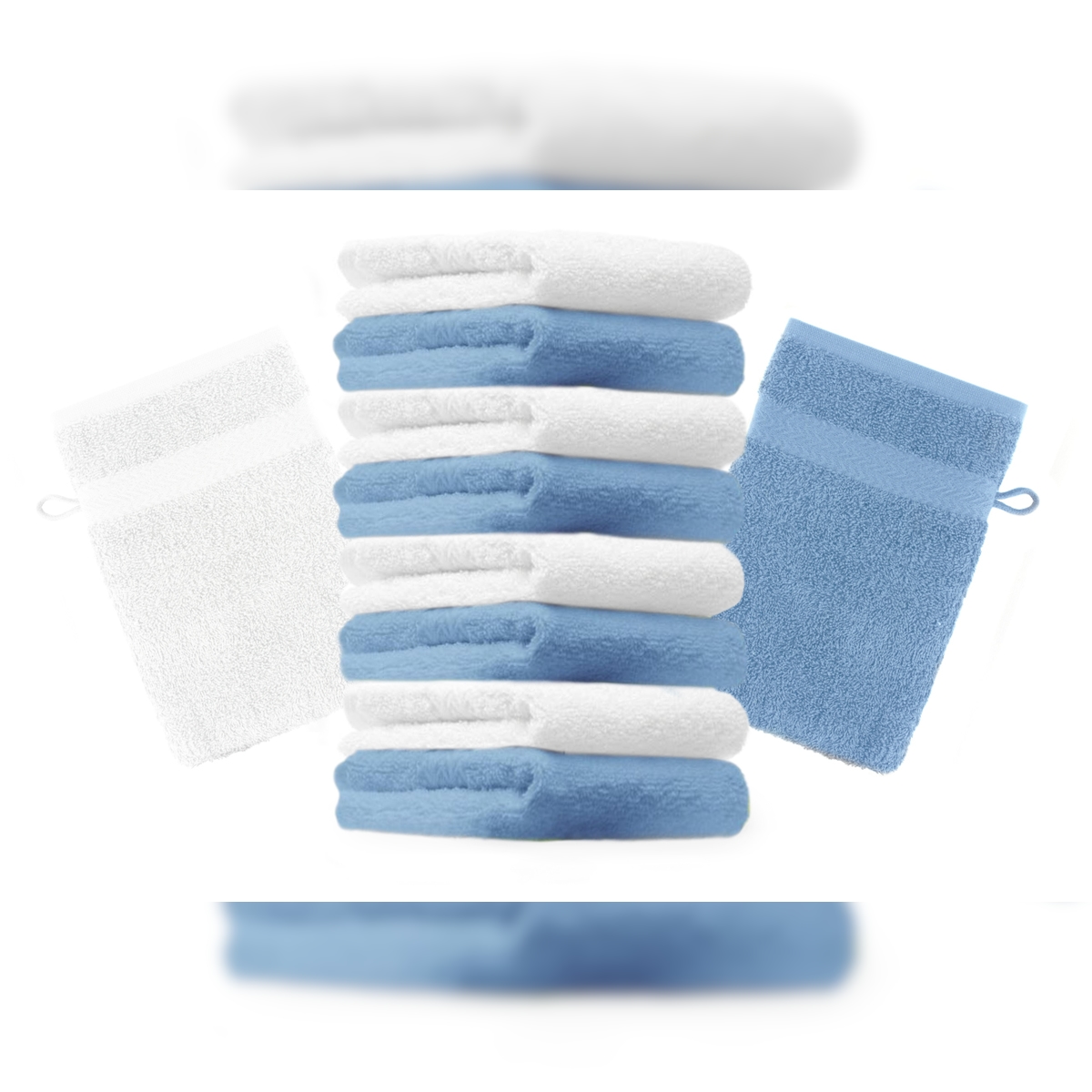 Betz 10 Stück Waschhandschuhe PREMIUM 100% Baumwolle Waschlappen Set 16x21 cm Farbe hellblau und weiß