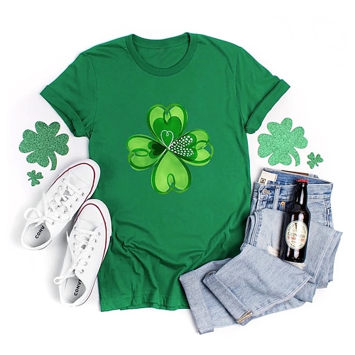 Giorno di San Patrizio Festa di San Patrizio Per donna Maglietta Trifoglio Moda Manica Corta Girocollo Top Regolari Casuale Giorno di San Patrizio Stampato Verde primavera Verde chiaro Verde militare