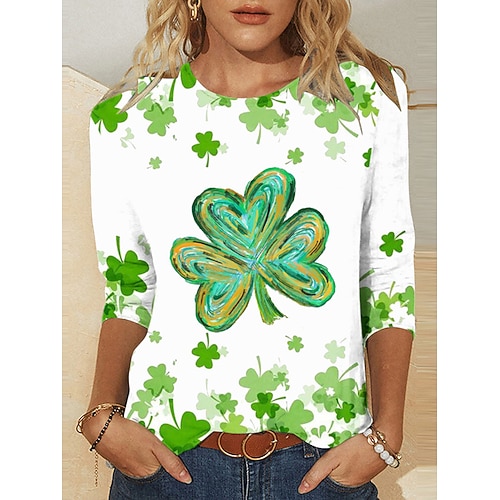 Maglietta da donna per il giorno di San Patrizio grafica Shamrock piante moda elegante classica maniche lunghe girocollo scollo rotondo top regolari stampa quotidiana bianca verde scuro verde estate