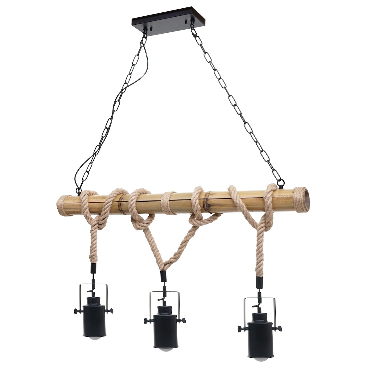 Mendler Pendelleuchte HWC-H82, Hängelampe Hängeleuchte, Industrial Vintage Bambus Seil Metall schwarz ~ 3x Spotlampenschirm