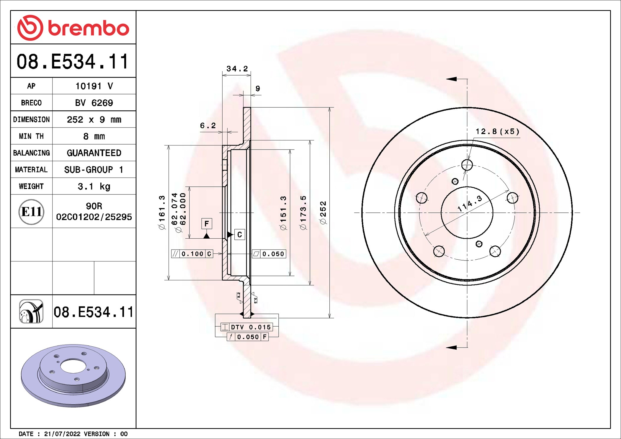 BREMBO Bremsscheibe 08.E534.11 hinten rechts links voll 252mm für SUZUKI 5561168R00