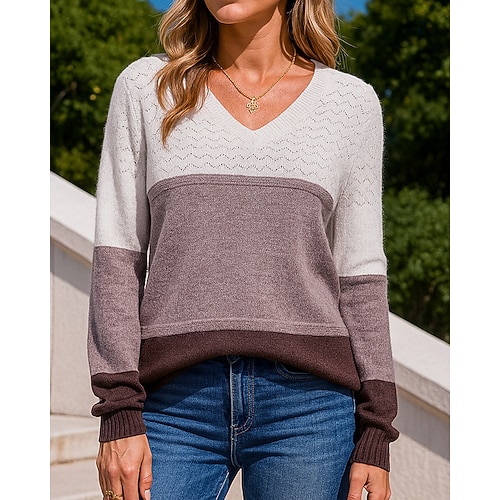 Per donna Maglia in maglia Pullover Maglione Incavato Manica Lunga Top Athleisure Autunno Scollo a V Blocco di colori Di tendenza All'aperto Viaggio Sportivo abbigliamento sportivo Abbigliamento