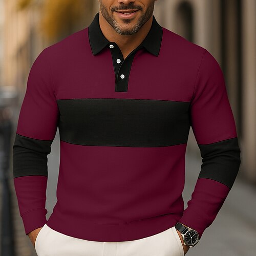 Per uomo Magliette Polo a Nido d'Ape Testurizzato Vacanza Streetwear Collo ripiegato Manica Lunga Moda Tempo libero Blocco di colori Blocco di colore Autunno Primavera Autunno Tutte le stagioni