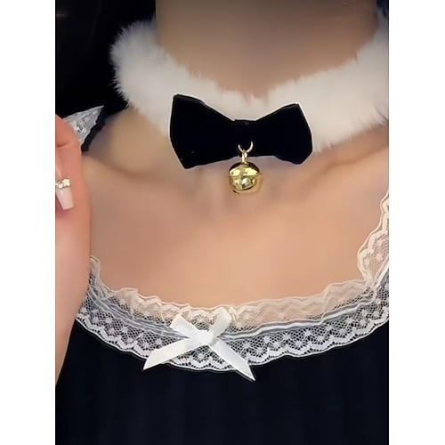 Collana girocollo natalizia da donna con fiocco in velluto, pelliccia sintetica e campanellino dorato, accessorio da collo festivo per feste di Natale e celebrazioni invernali