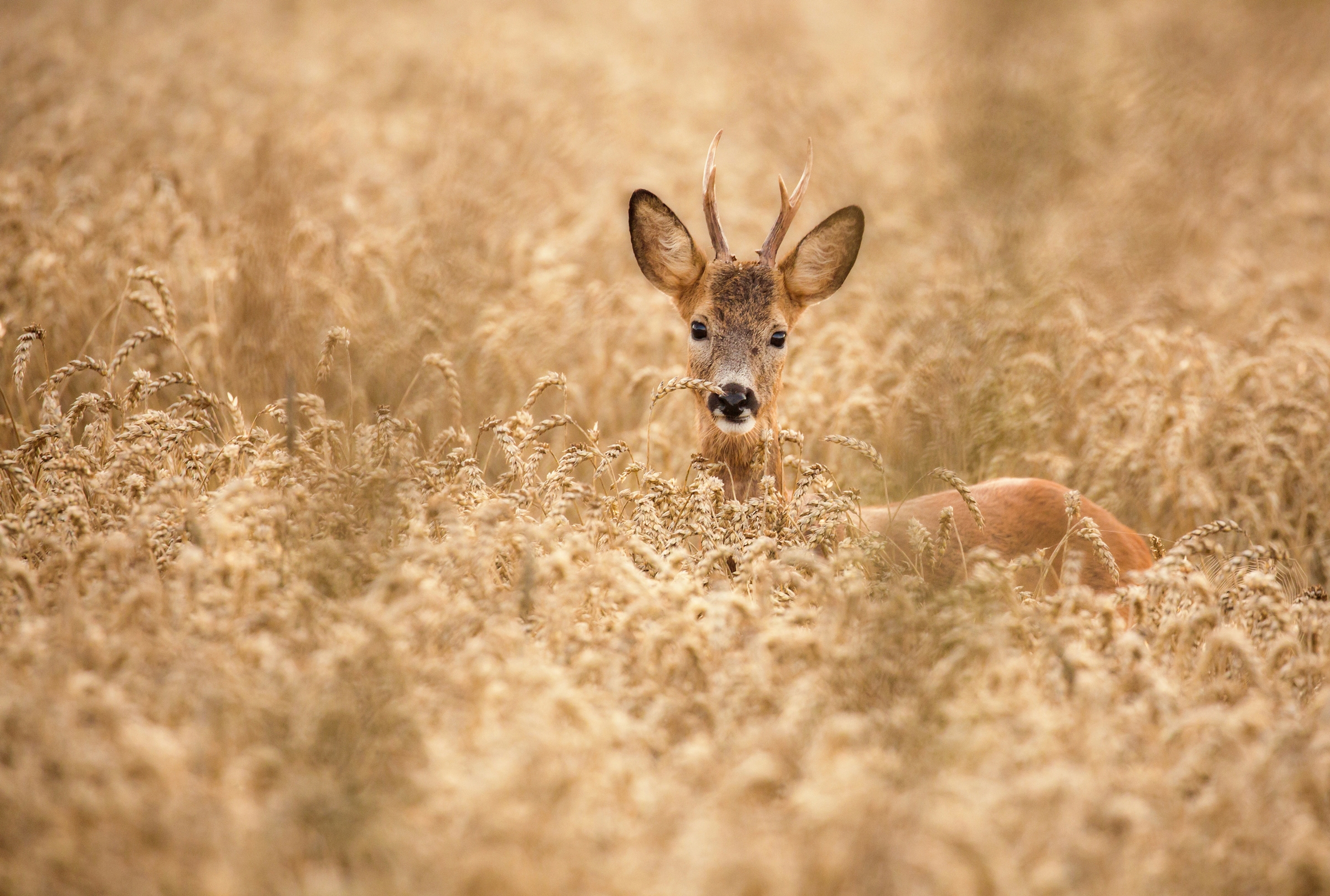 Fototapete PAPERMOON "Photo-Art ALLAN WALLBERG, HIRSCH IM FELD", bunt, B:5,00m L:2,80m, Vlies, Tapeten