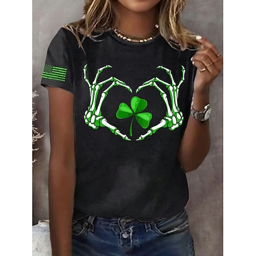 T-shirt da donna per il giorno di San Patrizio floreale elegante classico casual maniche corte scollo tondo top regolare stampa giornaliera nero bianco verde chiaro off-white estate primavera