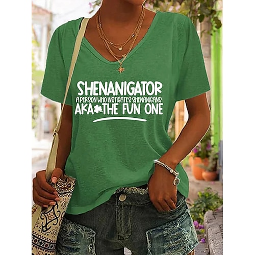 Maglietta da donna per il giorno di San Patrizio grafica lettera stilosa classica casual manica corta colletto a V top regolari stampa quotidiana nera bianca verde estate primavera