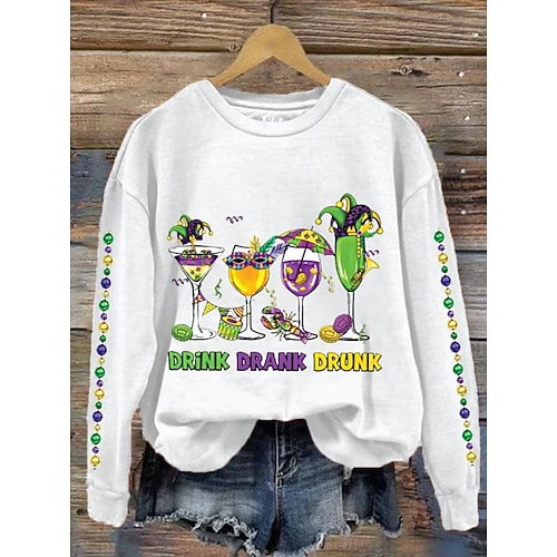Felpa da Donna Carnival Graphic Shamrock Classica Casual Maniche Lunghe Collo Tondo Tops Regolari Abiti da Festa Serale Stampa Nera Gialla Viola Verde Primavera Autunno