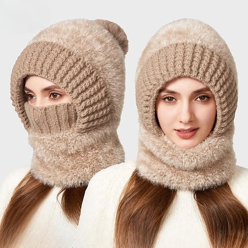 Cappello invernale da donna 3 in 1, lavorato a maglia, con scaldacollo e mascherina, ad alta elasticità, tinta unita, antivento, caldo, da ciclismo per il freddo