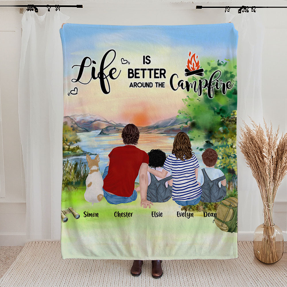 Personalizzato Life Is Better Around The Campfire Coperta morbida Compleanno Regalo di Natale per la famiglia Gli amanti del campeggio Accessorio da c