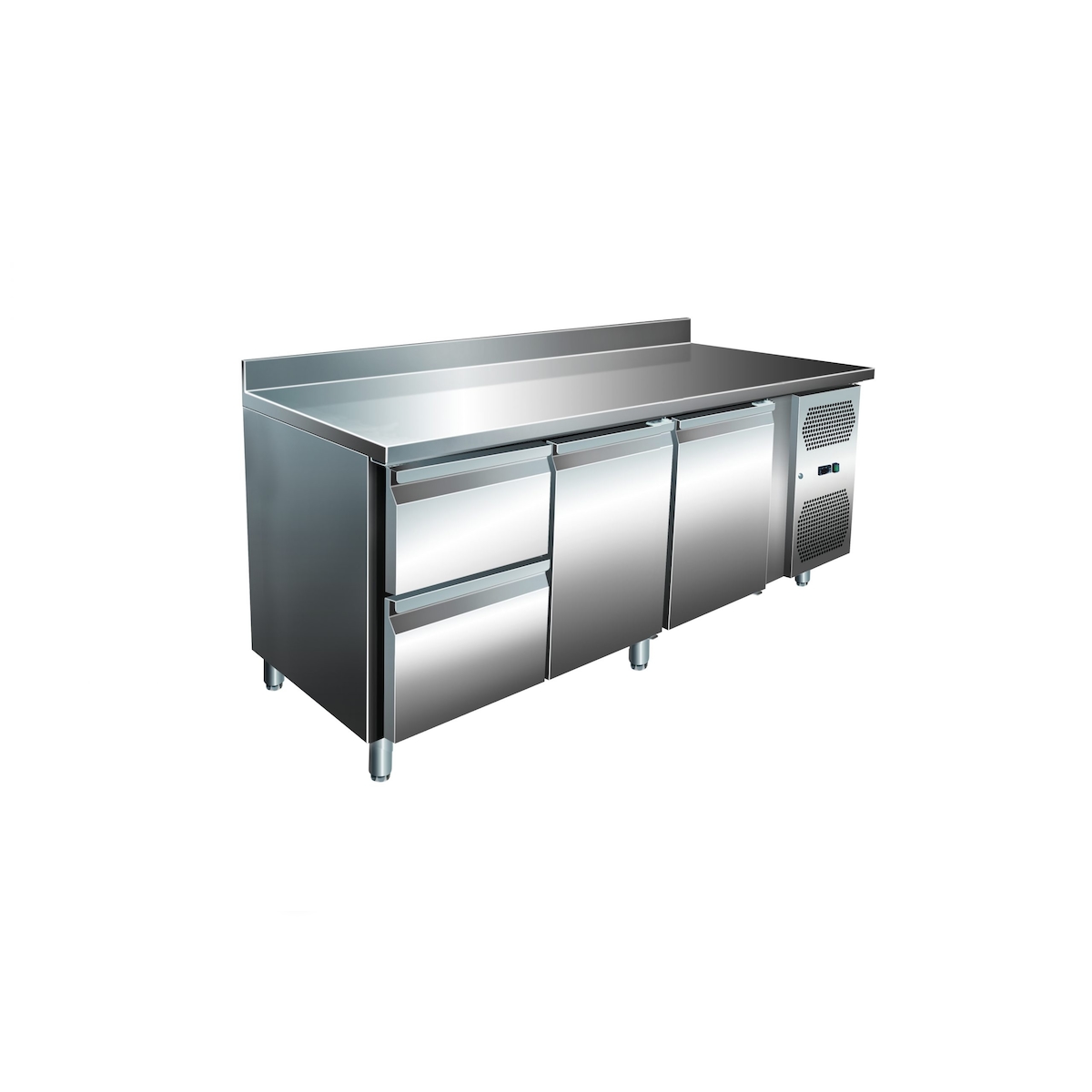 A&S polarny Gastro Edelstahl Kühltisch Kühltheke 2 Türen / 2 Schubladen 242 L -2/+8°C Aufkantung