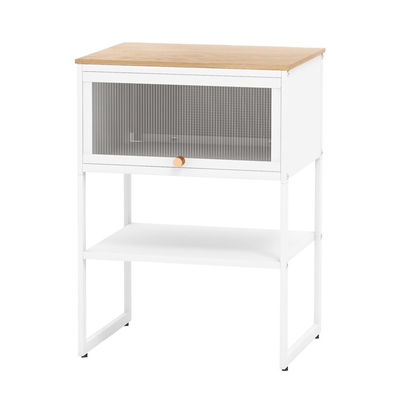 COSTWAY Nachttisch Metallgestell, Beistelltisch mit durchsichtiger Falttür, Schublade und offenem Regal, 40 x 32 x 56 cm (weiß)