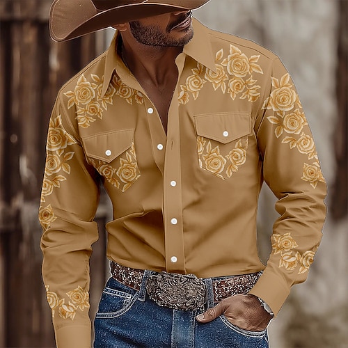 Per uomo Stampa Floreale Fiori Camicia Camicia Western Camicia da cowboy Manica Lunga Vintage Retrò All'aperto Casuale Abbigliamento da lavoro Primavera Autunno Collo ripiegato Due tasche anteriori