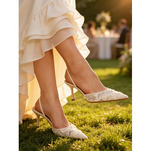 eleganti sandali con tacco e punta aperta in pizzo da donna – scarpe con cinturino posteriore decorate con fiori per matrimoni in giardino, ideali per gli invitati al matrimonio e per le occasioni