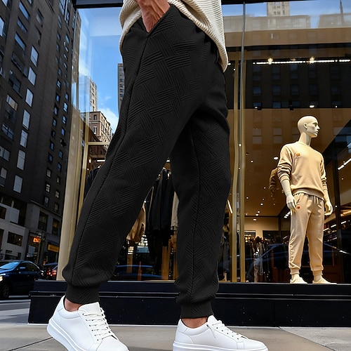 Per uomo Joggers Pantaloni Pantaloni casual Jacquard Coulisse Tasca Semplice Comodità Traspirante All'aperto Quotidiano Ferie Moda Stile Classico Verde militare Nero Micro-elastico