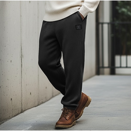 Per uomo Nido d'ape Pantaloni da tuta Joggers Pantaloni Pantaloni casual Coulisse Polsino elastico Tinta unica Comodità Lunghezza intera All'aperto Casuale Quotidiano Moda Stile Classico Nero Bianco