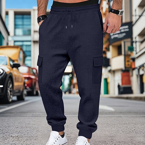 Per uomo Pantaloni Cargo Joggers Pantaloni Pantaloni a Nido d'Ape Multi-tasche Tasca con Patta Tinta unica Comodità Indossabile Quotidiano All'aperto Ferie Streetwear Elegante Nero Azzurro cielo